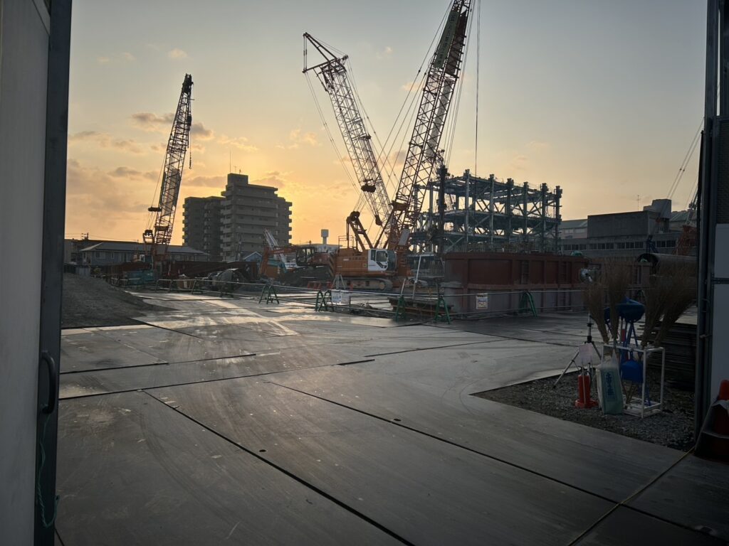 師走、年末のご挨拶に弊社営業が各現場を訪問させて頂きました。岡山で朝日が昇る早朝のベストショット撮影ができました。これからスタートする現場です。ご安全に!